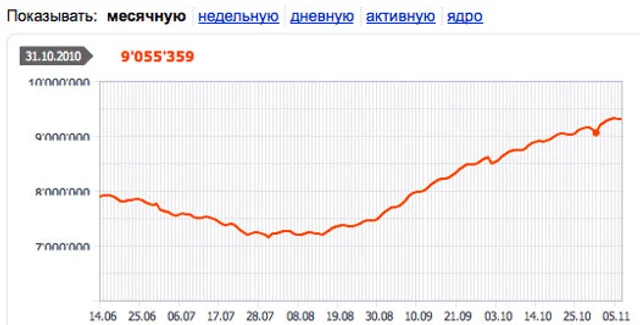 Ядро аудитории (пользователи, которые на протяжении месяца заходили в Интернет хотя бы раз в неделю) увеличилось на 8,98%. Количество таких активных пользователей достигло 2 млн. 870 тыс.