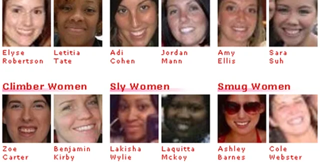 Для удобного поиска партнера добытые фотографии женщин и мужчин были разделены на несколько категорий: "элегантные", "амбициозные", "веселые", "непослушные", "спокойные", "беззаботные".