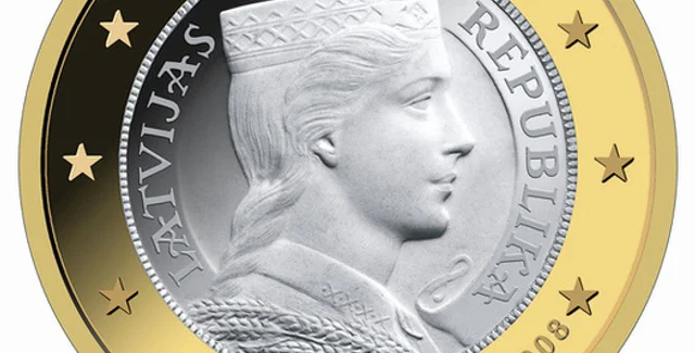 На латвийских монетах евро достоинством в 1 и 2 евро вычеканят девушку в национальном костюме - Милду, а на монетах меньшего достоинства будет изображен латвийский герб, сообщил директор Центра по образованию Мир денег при Банке Латвии Янис Мотиванс.