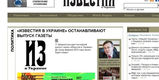 Сегодня, 11 февраля, вышел последний выпуск газеты Известия в Украине.