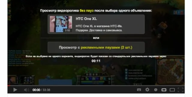 В случае, если пользователь выберет рекламную паузу, либо не отметит ничего в отведенный отрезок времени, во время ролика ему покажут несколько рекламных сообщений. Их количество будет зависеть от продолжительности самого видео.