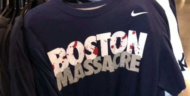 Компания Nike изъяла из продажи футболки с надписью Бостонская резня (Boston Massacre), сообщает ИТАР-ТАСС, ссылаясь на главный офис компании, расположенный в предместье города Бивертон.