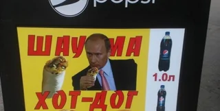 В Одессе для рекламы киоска с шаурмой использовали фотографию президента России Владимира Путина.