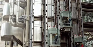 Отметим, что здание Lloyd's of London знаменито как "здание, вывернутое наизнанку", где лифты, лестницы, а также системы коммуникаций сооружены снаружи.