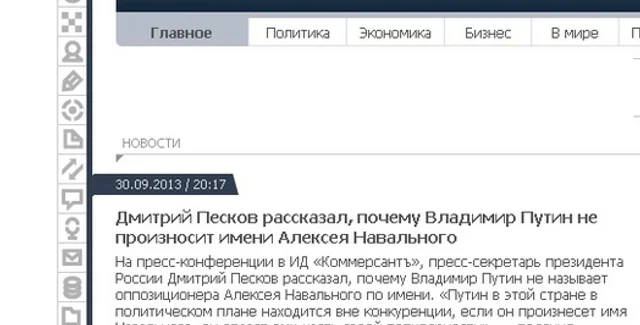Следует подчеркнуть, что заметка под заголовком "Дмитрий Песков рассказал, почему Владимир Путин не произносит имени Алексея Навального" была опубликована на сайте Коммерсанта 30 сентября в 20:17.