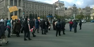 В Киеве вкладчики неплатежеспособных банков в четверг днем перекрыли улицу Крещатик на пересечении с улицей Институтской.