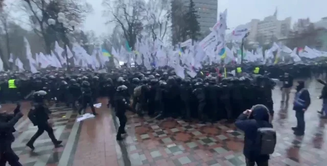 После провала голосования за законопроект об отсрочке введения кассовых аппаратов (PRO) предприниматели, митинговавшие под Верховной Радой, начали прорываться в здание парламента, сообщает "Страна".