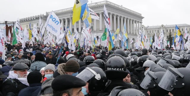 Их не устроило решение ВР, они вышли на протест. Требуют отмены фискализации, отмены январского локдауна, отставки Гетманцева, Шмыгаля. Организаторы не скрывают, что это политическая акция.