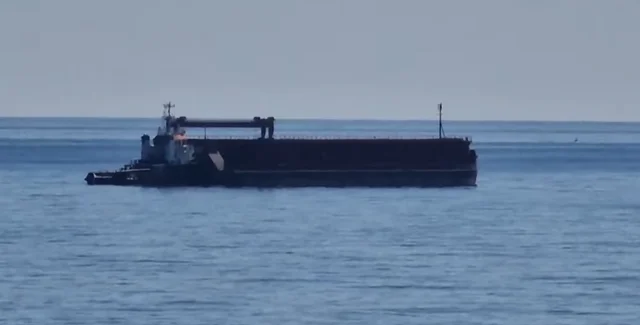 Баржа, сопровождаемая буксиром под флагом Португалии, пришвартовалась к частному терминалу в Варне.