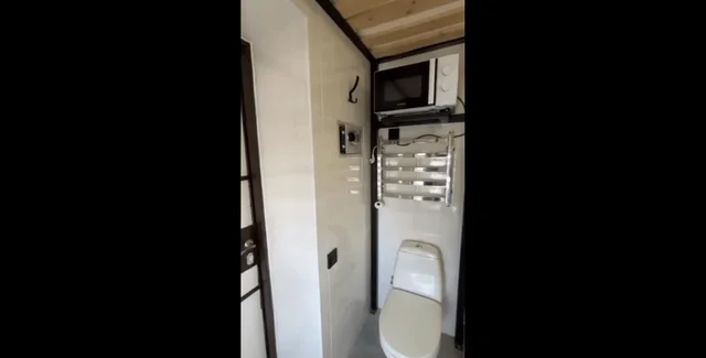 Особенностью жилья является то, что на крохотной площади разместились унитаз, над которым закреплена микроволновка, маленький холодильник, душ и даже комод. Над всем этим расположена полуторная кровать с ортопедическим матрасом и плазменный телевизор. Соответствующую видеопрезентацию мини-апартаментов опубликовал Telegram-канал "Типичный Львов".