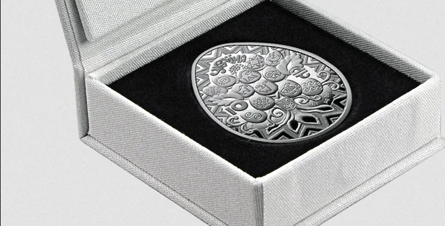 Монета отчеканена из серебра 999-й пробы, украшена эмалью и позолотой. Тираж ограничен – всего 7500 экземпляров, при этом каждый покупатель мог приобрести только одну монету.