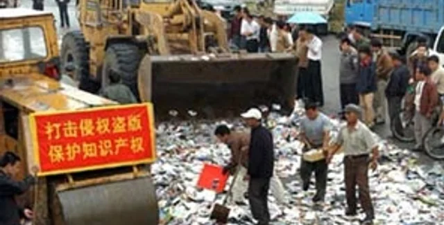 Китай является одним из крупнейших в мире производителей пиратской и поддельной продукции. США угрожали подать жалобу на Китай в ВТО с 2005 года, требуя более сурового наказания для лиц, нарушающих законы об интеллектуальной собственности. По данным Торгового представительства США, опубликованным в 2007 году, вместе с Китаем к числу самых пиратских стран мира относится Россия, которая пока членом ВТО не является.