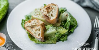 Салат "Цезарь" является одним из самых популярных и готовится с куриным филе, лососем, мясом краба и нежной поджаренной телятиной. Знаменитый украинский култинар Евгений Клопотенко на своем сайте предложил приготовить это блюдо по классическому рецепту, в котором сочетались листья салата, сухарики, творог и пикантная заправка.