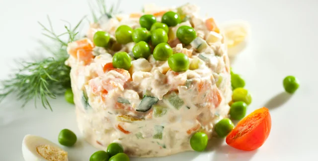 "Оливье" без колбасы и майонеза: необычный вариант знаменитого салата