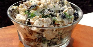 Сочетание куриного мяса, чернослива и грибов дает очень необычный вкус и непременно понравится всем, кто попробует салат, рецепт которого рассказали в кулинарном блоге "Аппетитная Кухня".