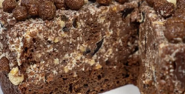 Затем торт необходимо вынуть из кольца и украсить по желанию. Интересным декором для него могут стать шарики сухого завтрака.