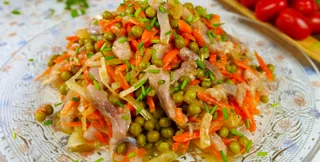 Закусочный салат с селедкой по рецепту от кулинарного блогера Ольги Матвей – возможность еще больше разнообразить праздничный стол, а на Рождество, когда меню должно быть постным, он будет как нельзя кстати.