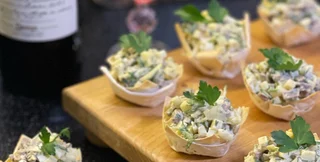 Вкусный салат из куриных субпродуктов, разложенный в оригинальные корзинки из лаваша украсит любой праздничный стол. Готовится блюдо просто, а результат добавит хозяйке авторитета в глазах гостей и родных. Как его приготовить, рассказала автор кулинарного блога cook_with_me_at_home.