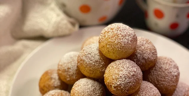 Жарить до золотистого цвета со всех сторон. Важно во время жарки постоянно "двигать" шарики для равномерности прожарки. Готовые шарики выложить на бумажное полотенце, чтобы ушел лишний жир. Готовые шарики посыпать сахарной пудрой.