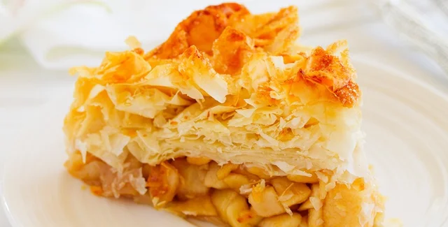 Главное в пироге – это тесто фило. И его лучше купить готовым. Можно приготовить и самостоятельно, но это сложный и трудоемкий процесс.