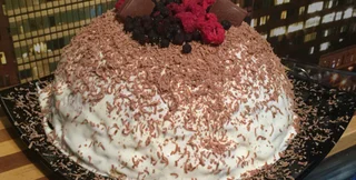 - Отправляем в холодильник до застывания. Когда десерт застынет, его необходимо перевернуть. Сверху можно присыпать какао или тертым шоколадом.