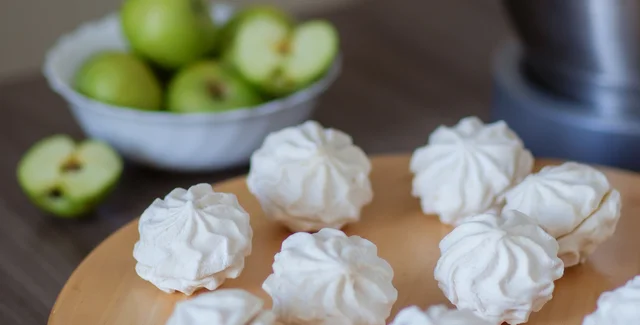 - Отдельно взбейте белки до жестких пиков и, не прекращая взбивать, введите в них яблочное пюре.