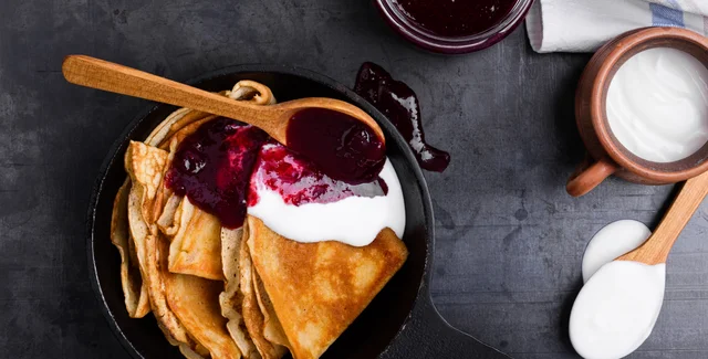 Блины можно есть со несладкими начинками вроде соленой рыбы, или мяса с грибами, можно сочетать с творогом и сыром, словом, это универсальное блюдо, к котором подходит буквально все. Но если вы захотите добавить сладкую начинку, то есть множество вариантов кроме джема, меда, или орехов.