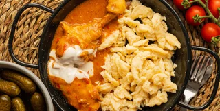 Паприкаш исторически — блюдо, изобретенное венгерскими пастухами. Но об этом никогда не догадаешься, пробуя конечный продукт — настолько нежен и богат его вкус. Мясо птицы в сложном соусе, где есть и красное, и белое начало, приобретает эластичную мягкость, а розово-кремовый цвет самого соуса добавляет эстетики в восприятие. По крайней мере, так получается у кулинарного блогера дяди Жени.