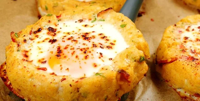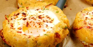 Приготовить картофельные зразы можно по-разному. Вот вариант, который предлагает известный ресурс Recept.ua. В нем, кроме картофеля, участвуют яйца, сыр, грудинка и сушеные помидоры. А главное — необычная форма: не котлетки, а гнезда, в которых, собственно, и размещаются яйца.