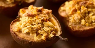Мякоть груши нужно смешать с овсяными хлопьями, измельченными орехами, сахаром, корицей и сливочным маслом. Отлично подойдут для начинки и изюм или другие сухофрукты, можно даже использовать готовые мюсли. Фокус расскажет, как приготовить этот десерт.