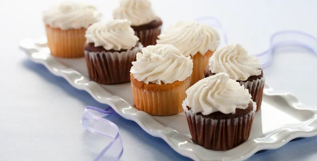 Затем добавьте к маслу сахарную пудру и охлажденный сливочный сыр. Все взбивайте около двух минут. Получится вкусный крем. Украсьте им верхушки кексов.
