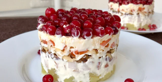 Салат "Моя прекрасная леди" — это вкусное блюдо, которое можно приготовить на праздничный стол. Он выкладывается в салатник слоями, а ананас и клюква придают ему пикантный вкус. Фокус расскажет, как его приготовить.