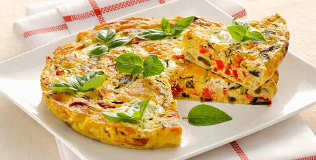Аккуратно налейте яичную смесь поверх овощной смеси, заполняя каждую формочку почти до краев. Запекайте омлет в духовке около 20 минут, пока он не станет твердыми по центру. После приготовления дайте яичным маффинам немного остыть перед выниманием из формочек. Подавайте их горячими или комнатной температуры.