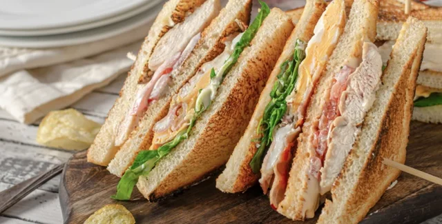 Если вы не знаете, чем порадовать и даже удивить близких, рекомендуем приготовить для них клаб-сэндвичи. Клаб-сэндвич – это бутерброд из хлеба, с нарезанным приготовленным мясом птицы, ветчиной или жареным беконом, листьями салата, помидорами и майонезом. Сэндвич часто разрезают на четвертинки или половинки и скрепляют вместе с помощью коктейльных палочек. Он готовится очень легко по рецепту из блога "Домашние рецепты" и станет инетресным дополнением в меню, а также отличным вариантом сытного перекуса.