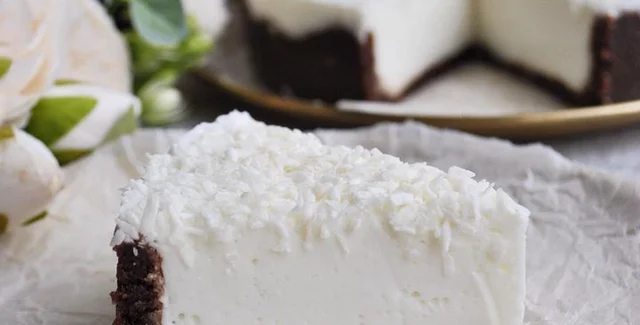 Этот торт больше напоминает нежный чизкейк с кокосовым ароматом.