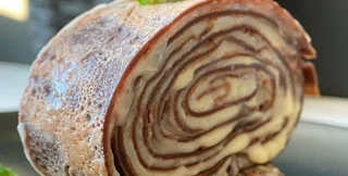 Сначала смешайте яйца и крахмал. Добавьте соль и сахар. Потом влейте немного молока и добавляйте муку небольшими порциями. Когда вмешаете всю муку, влейте оставшееся молоко. Так получится меньше комочков. Добавьте какао и снова перемешайте. Тесто должно быть жидким, чтобы разливалось тонким слоем.