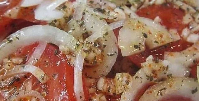 Овощная закуска к мясу из помидоров и лука в маринаде позволит улучшить вкус шашлыка, стейка и любого другого мяса. Готовить ее очень просто, но лучше сделать это за пару дней до предполагаемого пикника, чтобы она хорошо настоялась. Как ее приготовить, рассказали в кулинарном блоге "Домашняя консервация".