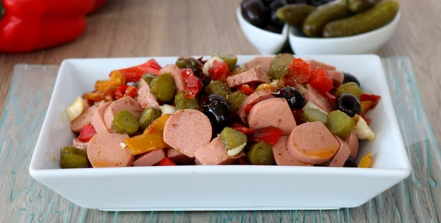 Вкусные сосиски, солененькие огурчики, болгарский перец и 15 минут времени — вот и все что вам нужно для этого чудесного венского салата.