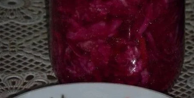 Капусту в глубокой посуде смешать с морковью, свеклой, чесноком, залить кипящим рассолом. Оставить на ночь под пресс, после чего разложить по банкам, закрыть капроновыми крышками. Хранить такую капусту можно как в холодильнике, так и в погребе. Большими порциями делать ее необязательно, поскольку даже зимой можно приготовить более свежую.