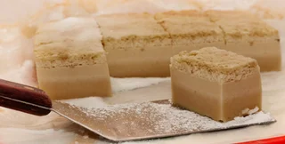 Теперь, когда он готов, разверните его и нарежьте прямоугольными кусочками очнеь острым ножом. Все, что вам нужно сделать теперь, это посыпать свой волшебный кофейный торт сахарной пудрой и наслаждаться вкусом.