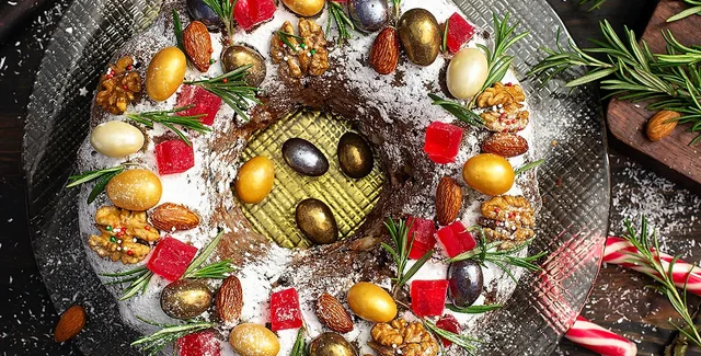 Миндальный пирог порадует вас простотой приготовления, богатым праздничным украшением и настоящим рождественским вкусом.