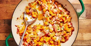 Мускатная тыква при запекании приобретает нежную и сладкую консистенцию. Легкая сладость тыквы удачно оттеняет солоноватый вкус сыра и ароматного бекона. Это блюдо может быть удачным гарниром к мясу или рыбе, считает кулинар Лорен Мияширо, сообщает Delish.