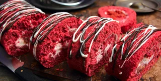 Чтобы приготовить этот великолепный праздничный рулет, вам понадобится вдохновение и всего 45 минут времени. К тому же бисквит можно пропитать коньяком или ромом, что сделает десерт еще вкуснее и ароматнее. Рецептом рулета "Красный бархат" поделился сайт Shef Donna.