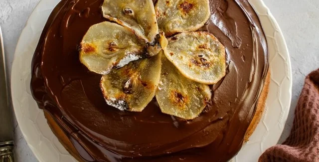 Торт с грушами и шоколадом — это очень нежный и ароматный десерт, приготовление которого не требует много времени. Сразу после того, как он остыл, его можно покрыть ганашем из темного шоколада и украсить тонкими ломтиками груши, высушенными в духовке. Рецептом поделились на сайте Un pizzico di Pepe Rosa.