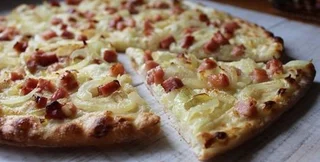 Сырный тарт, или пирог фламбе со шпиком, или ветчиной, луком-пореем и яблоками – вкусное и простое в приготовлении блюдо. Его можно предлагать как закуску и как второе блюдо.