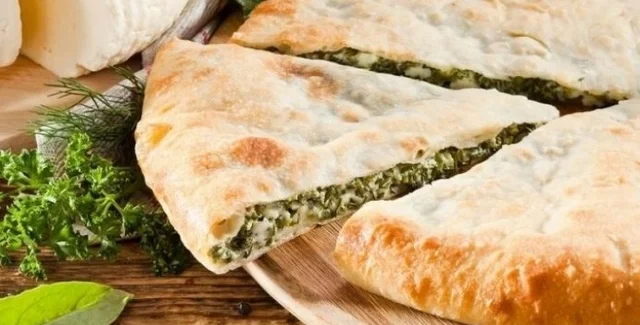 Осетинский, или кавказский пирог с сыром и зеленью готовится с тестом, замешанным на дрожжах и кефире. Такой пирог с сыром и зеленью отлично подходит в качестве перекуса. И его можно взять с собой на работу.