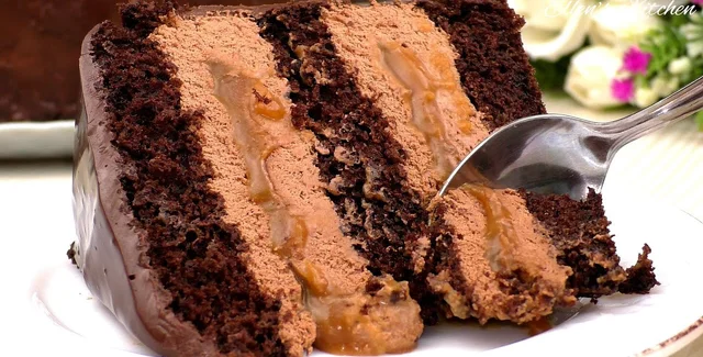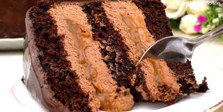 Сливочный крем, карамель и шоколадные коржи дают невероятное сочетание вкусов. Такой торт украсит любой стол.