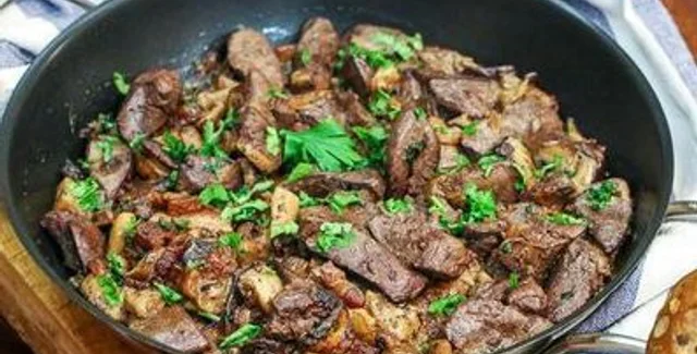 Для семейного ужина: куриная печень с грибами в сливочном соусе: куриная печень с грибами