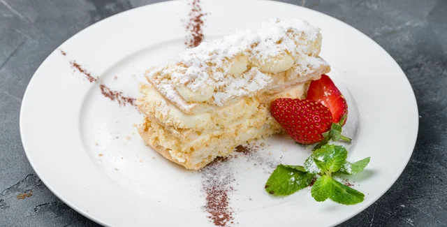 Торт "Наполеон" можно сделать и в постном варианте. Его изюминка — это замечательный сладкий кокосово-ванильный крем. В нем нет яиц, сливочного масла, коровьего молока и сметаны. Получится так же вкусно, как и классический "Наполеон". Рецептом поделились на сайте Shuba.Life.