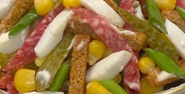 Простой и быстрый салат с сухариками: рецепт сытного блюда